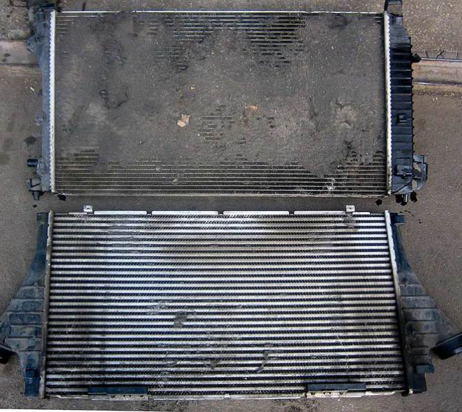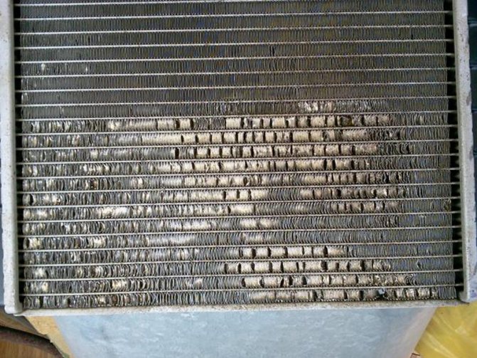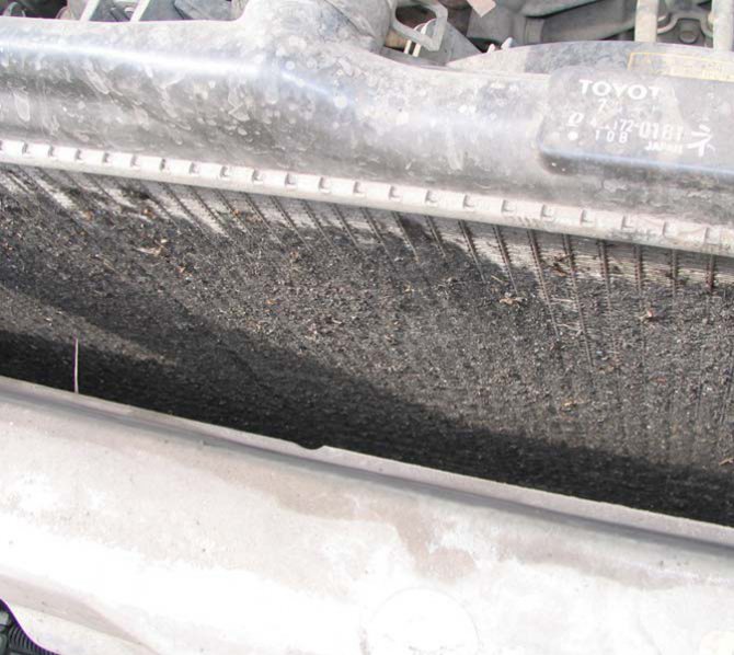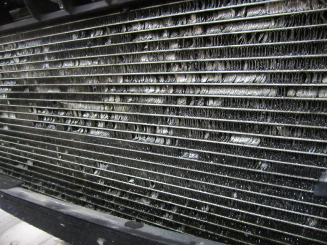 Les services au public n'impliquent pas nécessairement la réalisation de certaines actions. Services à la population peut être pour donner des conseils. Et aujourd'hui, nous examinerons un problème auquel les automobilistes sont confrontés. Pourquoi le moteur chauffe-t-il? C'est l'une des questions les plus courantes, en particulier par temps sec et chaud. Nous regardons l'indication dans la cabine, en conduisant, et nous comprenons qu'elle est plus élevée qu'elle ne devrait l'être. On se souvient que la température du moteur prend généralement une certaine place sur l'échelle. Et dans la chaleur, quand on allume le climatiseur en se tenant dans les embouteillages de la ville, il monte un peu plus haut. C'est bien s'il est plus haut que d'habitude! C'est pire quand il commence à grandir et ne s'arrête pas. Pourquoi le moteur chauffe-t-il encore?? Il peut y avoir plusieurs raisons. Faisons attention à celui qui est le plus souvent en surface, dans le vrai sens du terme. Radiateur de refroidissement... Oui, c'est le radiateur de refroidissement qui est le plus souvent la raison pour laquelle le moteur chauffe. Pour être précis, bien sûr, pas le radiateur de refroidissement lui-même, mais la saleté qui peut s'y accumuler. Voici un exemple de ce à quoi un radiateur sale pourrait ressembler.