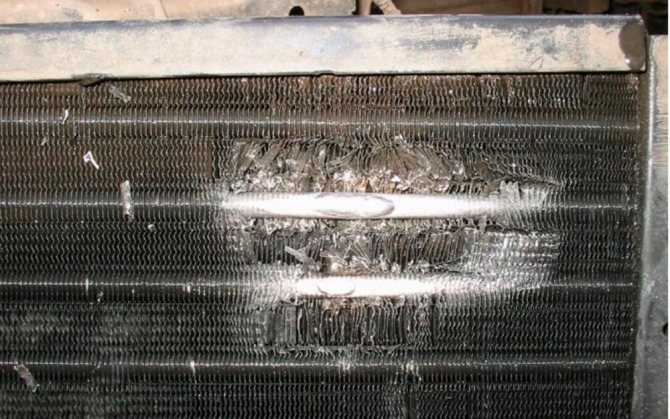Le radiateur retiré peut être nettoyé à l'extérieur pour éliminer la saleté, les insectes et le sable du nid d'abeille plus frais. Le nettoyage est effectué avec de l'eau savonneuse ou des appareils spéciaux qui créent un fort débit d'eau ou d'air, comme un aspirateur Karcher. La procédure doit être effectuée avec soin afin de ne pas plier le nid d'abeille du radiateur.