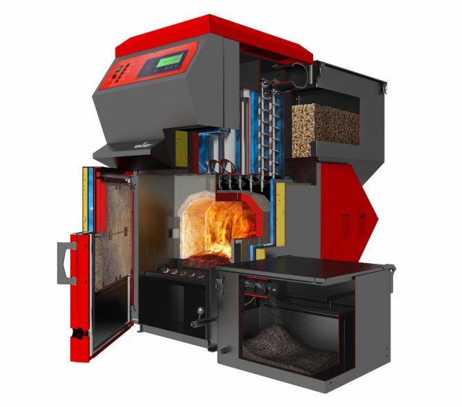 Un grand choix (pellets, bois de chauffage, charbon, gaz) confère à une telle chaudière un grand avantage. En l'absence d'un type de carburant, vous pouvez toujours passer à un autre type et rester au chaud.
