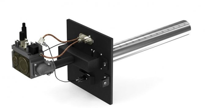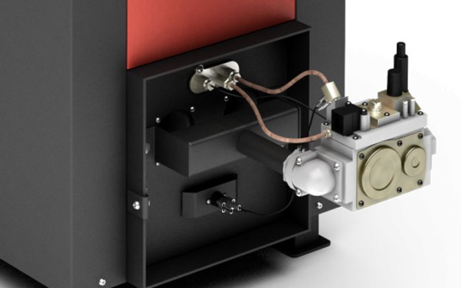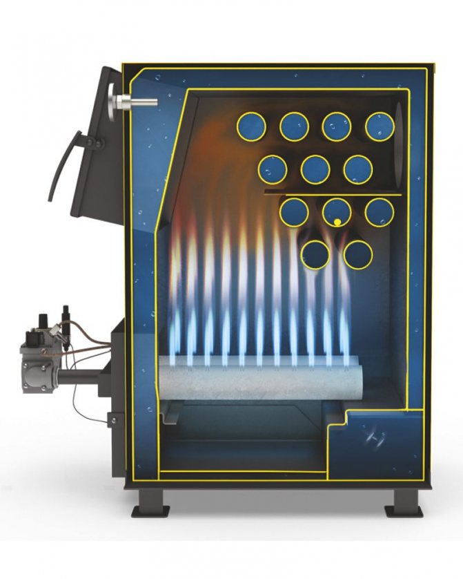 Modèle combiné avec brûleur à gaz installé. Schéma sur l'exemple du modèle Teplodar Kupper OK 15.