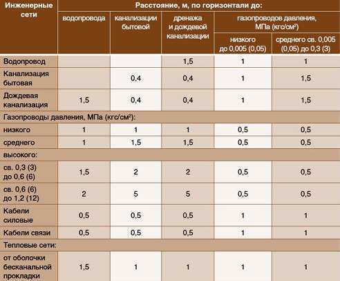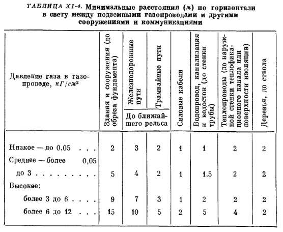 Distance entre la conduite de gaz (gazoduc souterrain) et les structures et communications conformément aux normes SNiP