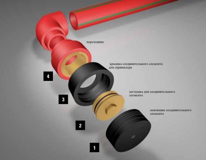 Une telle composition en plastique, incl. polypropylène, rend les produits qui en sont fabriqués résistants au feu, ce qui leur permet d'être utilisés dans le développement, l'installation de plusieurs types d'installations d'extinction automatique d'incendie, sans entrer en conflit avec les exigences de sécurité incendie assez strictes pour les éléments techniques dans leur composition.