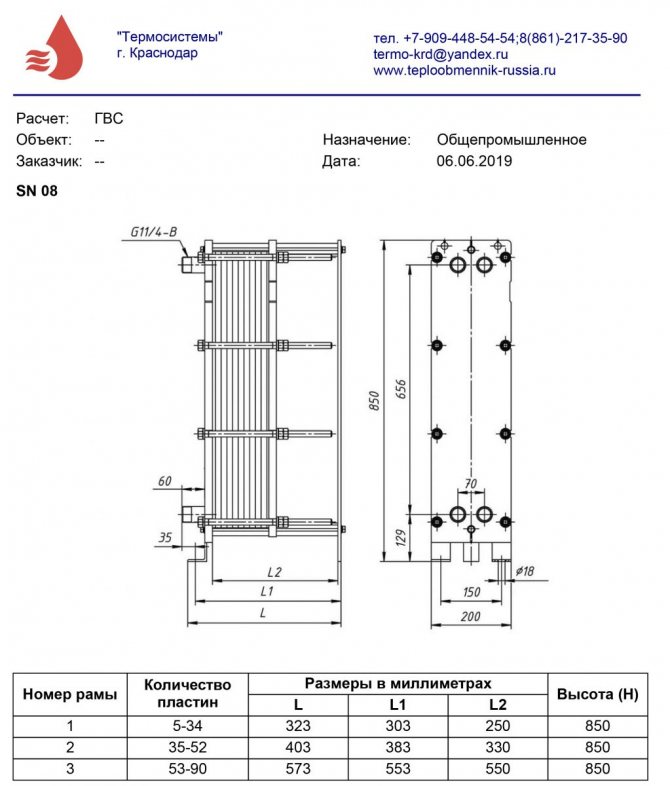 1. Échangeur de chaleur à plaques НН 04, prix - 19 200 roubles, temps de production 1 jour. Puissance - 15 kW. Circuit de chauffage - 105C / 70C Circuit de chauffage - 60C / 80C