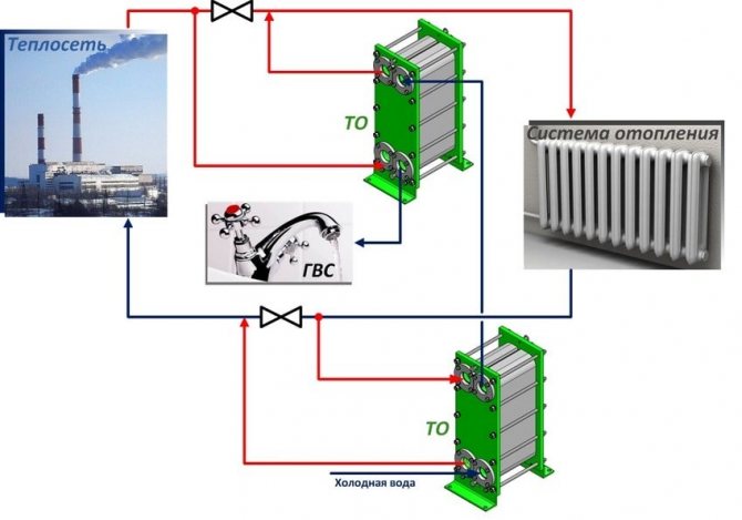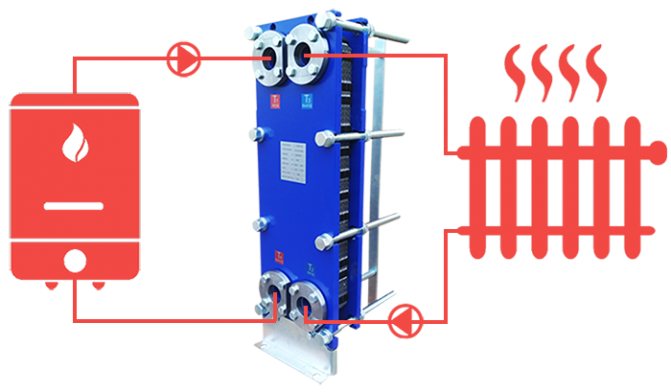 La tâche de cet échangeur de chaleur est de transférer la chaleur d'une source de chaleur vers des appareils de chauffage qui chauffent directement la pièce. Le circuit source de chaleur et le circuit consommateur de chaleur sont séparés hydrauliquement - les caloporteurs ne se mélangent pas. Le plus souvent, des mélanges d'eau et de glycol sont utilisés comme caloporteurs de travail.
