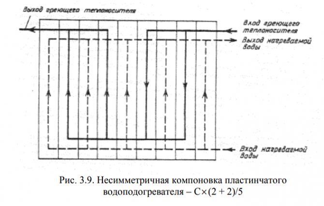 En raison de l'alternance de plaques par paires, de telles cavités apparaissent, qui pendant le fonctionnement sont remplies soit d'un liquide à chauffer, soit d'un caloporteur. C'est grâce à cette conception et au principe de fonctionnement que le déplacement des supports entre eux est complètement exclu.