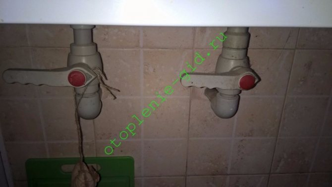 - Le raccordement à l'alimentation en eau s'effectue presque de la même manière. Ici aussi, n'abandonnez pas les filtres grossiers et les vannes d'arrêt. Comme dans la version avec un appareil mural, vous pouvez utiliser "American", qui ont des connexions détachables.