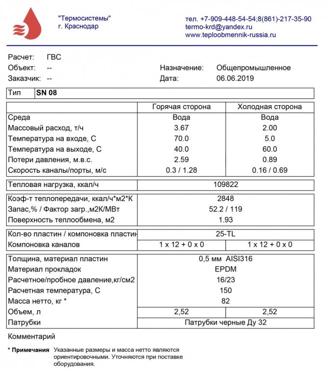 Pour que l'échangeur de chaleur soit efficace dans le système de chauffage et d'alimentation en eau chaude, les paramètres suivants doivent être pris en compte lors du choix: