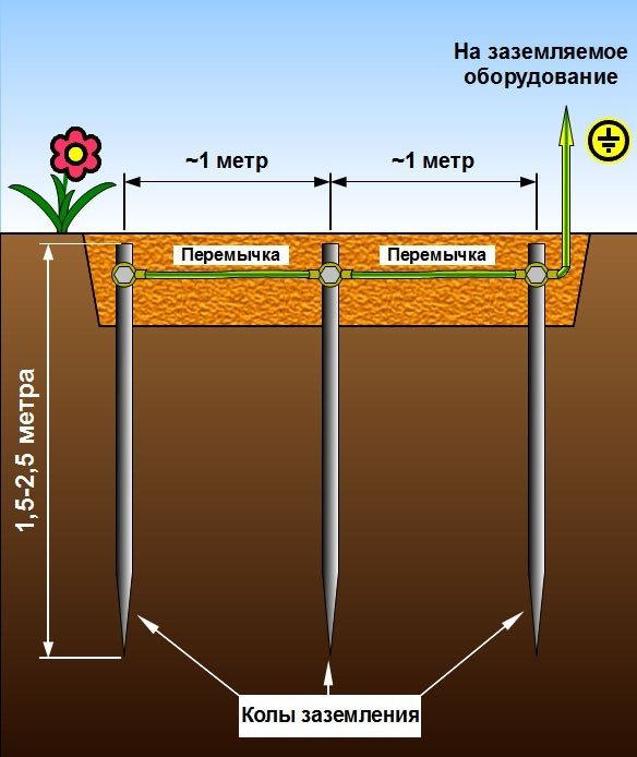 La chose la plus difficile dans l'installation de la mise à la terre est le terrassement. La profondeur d'immersion des tiges est de 2,5 à 3 m, ce qui ne signifie pas qu'un trou de trois mètres doit être creusé. Il suffit de parcourir la moitié de la profondeur et le reste est obtenu en enfonçant les tiges dans le sol. Une grande partie ici est déterminée par la présence de pierres dans le sol. Dans les sols rocheux, cette méthode d'immersion n'est pas du tout possible.