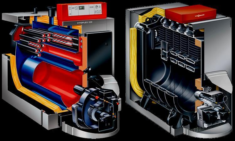 Les chaudières à eau chaude à gaz sont divisées en 2 types selon le type d'emplacement de l'échangeur de chaleur à l'intérieur du corps: