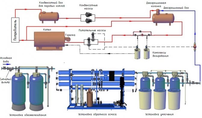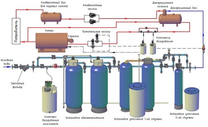 Contrairement au traitement de l'eau pour les chaudières à vapeur, où un système d'adoucissement à deux étages est utilisé pour obtenir les paramètres chimiques requis, des systèmes d'adoucissement à un étage sont utilisés pour les équipements de chauffage de l'eau. Cela réduit les coûts de préparation et améliore l'efficacité de l'équipement.