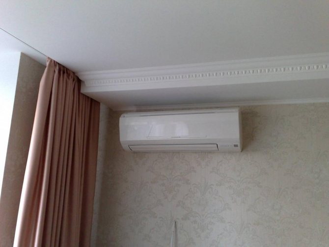 S'il y a un placard à côté du climatiseur, la prise peut y être cachée et disposée sous la forme d'une unité rétractable (en haut, en bas ou sur le côté). Il peut également être fermé avec un faux panneau ou une corniche.
