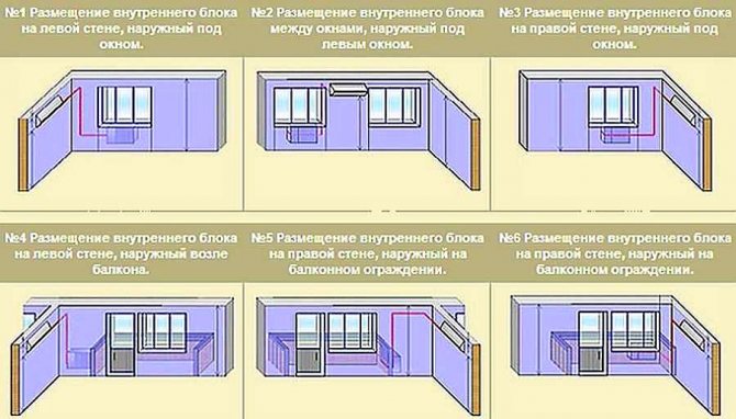 Comme mentionné ci-dessus, la hauteur de la sortie du climatiseur dépendra directement de la taille de l'appareil. Il peut être installé à la fois en bas et en haut du mur.