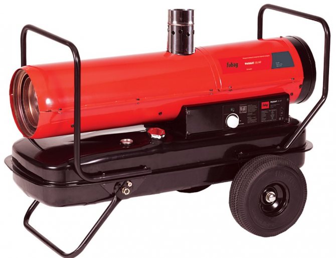 Lors de l'utilisation d'un canon sur du carburant diesel, il est nécessaire d'utiliser une ventilation d'alimentation et d'échappement, s'il y en a une, sinon, il est préférable de le faire afin de ne pas être empoisonné par les produits de combustion.Vous pouvez utiliser un canon diesel à chauffage indirect, de telles options sont efficaces, car, en raison de leur conception, le carburant brûle complètement et la chaleur passe à travers un échangeur de chaleur spécial. Les produits de combustion résiduels sont évacués à l'extérieur par un tuyau spécial.