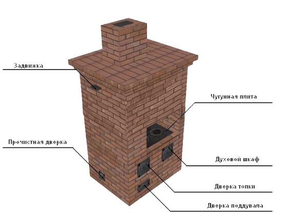 Donc, si exactement de la maçonnerie plate en brique est utilisée, l'option la plus simple pour monter un poêle est d'installer un cadre métallique indépendant avec un ventilateur et une cheminée (plus précisément, y accéder).
