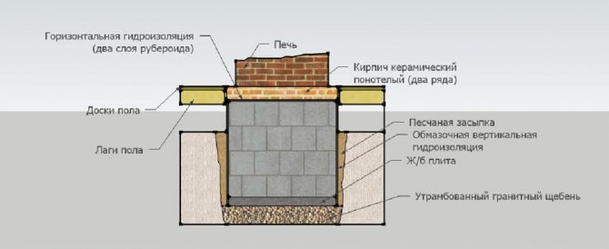 Lorsque le poids total du four est moins de 7 centièmes, il n'y a pas besoin de fondation, mais encore une sorte de "piédestal" de brique est en cours de construction. C'est bien quand cela se produit pendant la période de construction. Vous pouvez à nouveau calculer la position pour que la base se situe entre les poutres inférieures sous le plancher... Mais il arrive que vous deviez remodeler l'ancienne base pour un nouveau poêle dans un ancien bain public. Puis vous ne pouvez pas vous passer d'ouvrir les sols et de vérifier leur solidité... Nous vous conseillons de lire les paragraphes correspondants de cet article, où vous trouverez des astuces pour renforcer les poutres et les retards, ainsi que des tableaux pour calculer leur «endurance».