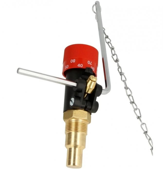 Important. Toutes les unités à combustible solide ne sont pas initialement équipées d'un régulateur de tirage mécanique, de sorte que l'utilisateur est tenté d'utiliser une soupape de sécurité comme régulateur de tirage, qui soulage la surpression lorsque le liquide de refroidissement bout. De telles économies se traduiront par le fait qu'en cas d'urgence réelle, il fonctionnera tard ou ne fonctionnera pas du tout, ce qui entraînera au moins de sérieuses réparations.