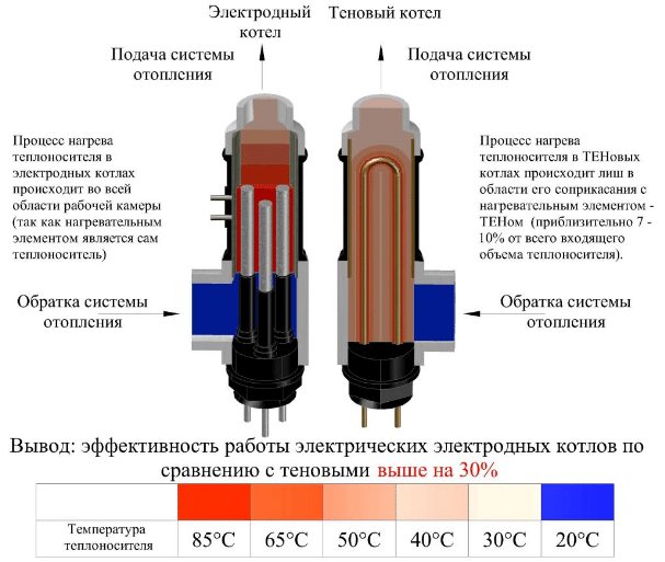 - Comparée aux unités alimentées par des éléments chauffants, la chaudière à électrodes est beaucoup plus économique.