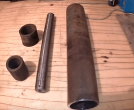 - Des tuyaux métalliques sont en cours de préparation: trois tubes d'un diamètre de 12,5 mm et deux d'un diamètre de 30 mm. Ces pièces sont découpées dans des tuyaux préparés à l'avance.