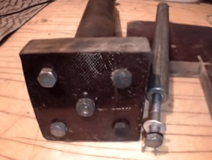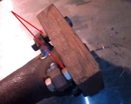 | Fixation du corps à la plate-forme. Afin de fixer fermement le corps de la chaudière à la plate-forme, j'ai soudé des écrous de 12 mm sur 4 côtés. Ils passent facilement des boulons de 10 mm. Mais ces "oreilles" doivent être légèrement surélevées au-dessus de la plate-forme, pour assurer cet écart, j'ai vissé les écrous "natifs" sur les boulons par le bas et fixé les supports avec les mêmes écrous par le haut. Les oreilles rigides sont plus faciles à souder. |