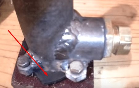 - Un cercle est découpé dans une tôle d'acier de la taille souhaitée et soudé au fond du réservoir de chauffage. Les saillies sont coupées, les joints de liaison sont poncés.