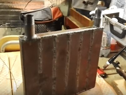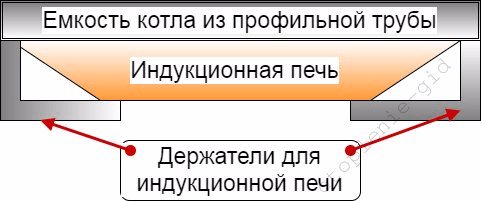 | Principe d'opération. Nous devons construire une sorte de récipient plat à partir d'un tuyau profilé à travers lequel l'eau circulera. Ensuite, fixez une cuisinière à induction à ce récipient et allumez-le. C'est la même chose que de mettre une casserole d'eau sur le dessus du poêle. |