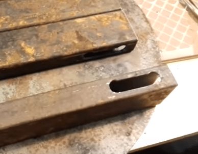 | Couper les trous de connexion. Les trous de connexion doivent être clairement opposés. Dans ce cas, j'ai percé 2 trous le long des bords avec une perceuse de 10 mm, puis découpé le milieu entre eux avec une petite meuleuse. |
