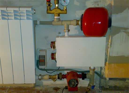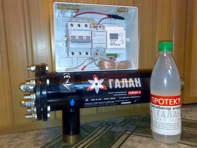 Ce type est le plus courant. Des éléments chauffants sont utilisés pour chauffer le liquide de refroidissement. Ils sont situés dans un échangeur de chaleur, qui, en fait, est un réservoir hermétique isolé thermiquement équipé de buses pour l'entrée et la sortie du liquide de refroidissement.