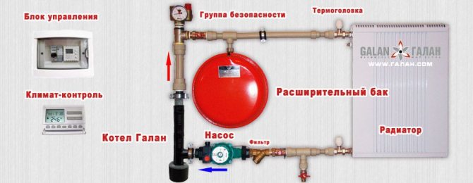 Dans ce cas, les vannes d'arrêt sont installées après le vase d'expansion. Le diagramme ci-dessus vous aidera à vous familiariser plus en détail avec les fonctions de connexion.