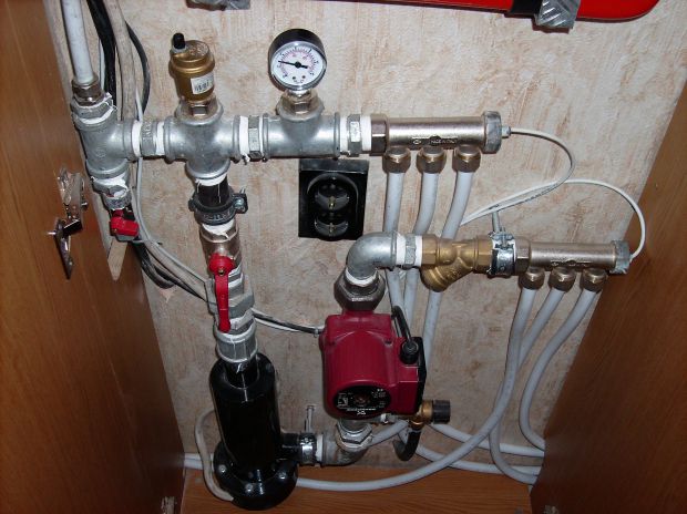- Une fois que tout est connecté, de l'eau est versée dans le système. Après plusieurs heures de fonctionnement, le système est vérifié avec un multimètre. Dans le cas où tout est effectué selon les instructions, les lectures des appareils seront de 70 ° C - cette température est optimale.