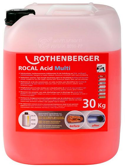 - Avant d'installer l'appareil, tout le système de chauffage est soigneusement rincé. Pour cela, de l'eau propre est prélevée, diluée avec un agent approprié (tel que, par exemple, Rothenberger). Si un liquide de refroidissement contaminé est utilisé ou si la conduite a été mal rincée, les performances de la chaudière ionique diminueront considérablement.