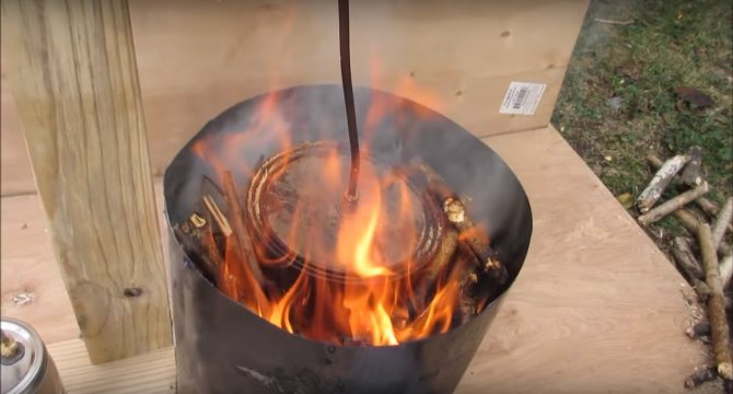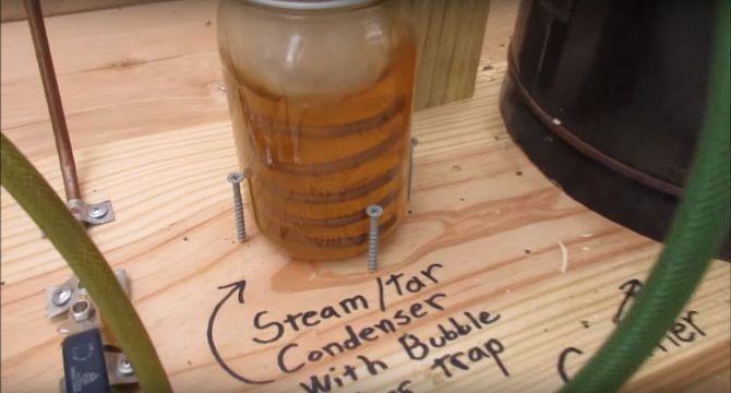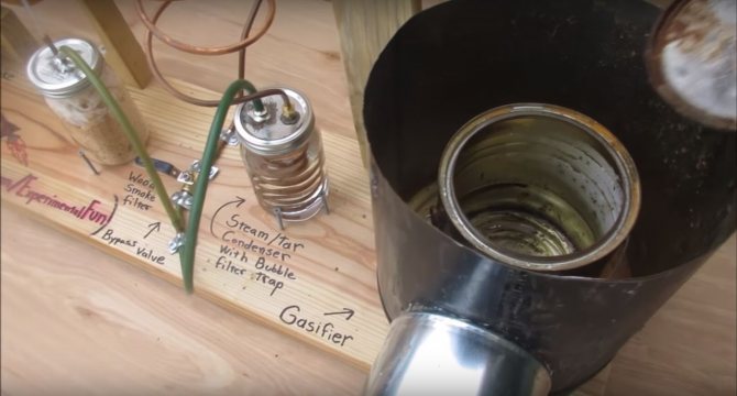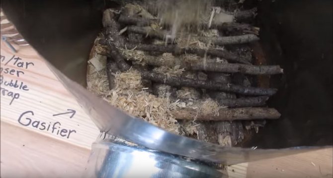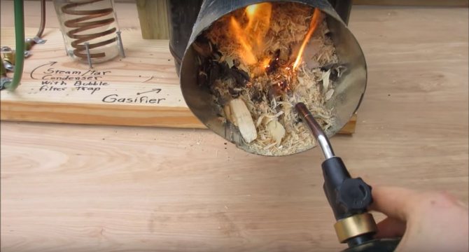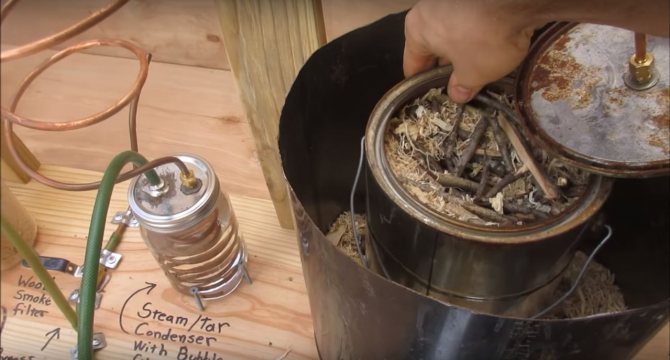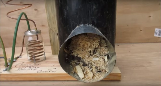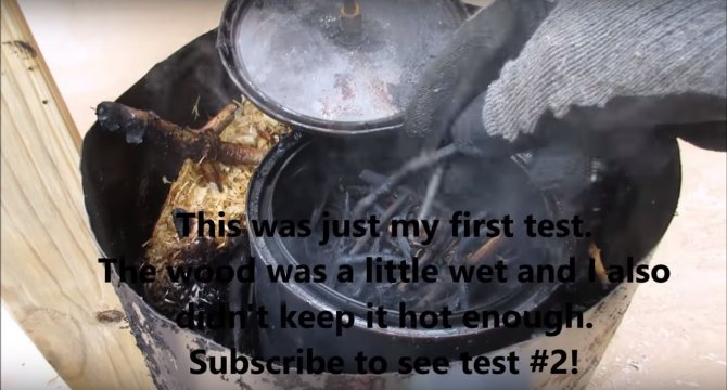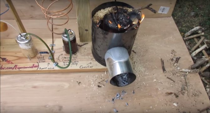 Le principe de la formation de gaz inflammable est très simple. Si vous mettez le bois dans un récipient scellé où l'oxygène ne pénètre pas, puis chauffez le carburant de l'extérieur, il commencera à fumer et la fumée ne sera rien de plus qu'une évaporation. Bien sûr, la fumée de feu ordinaire n'est pas inflammable, car tout ce qui pourrait y brûler a déjà brûlé dans le feu. Dans notre fumée, qui sortira du four, il y aura beaucoup de résines inflammables et d'autres composés.