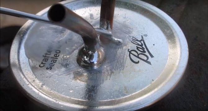 Dans l'autre couvercle, nous forons également des trous et des tubes de soudure de différentes longueurs, ce sera un filtre.
