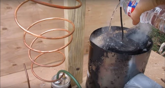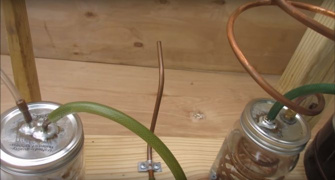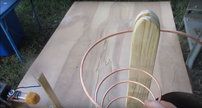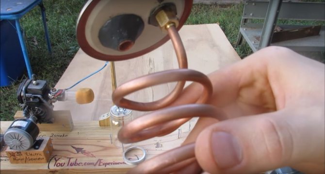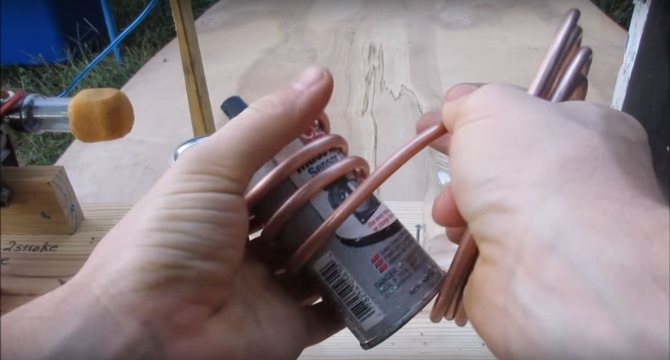 Quant à la plus grosse bobine, elle se fait de la même manière, mais avec un diamètre plus grand. Le but des serpentins est un - pour refroidir le gaz afin qu'il ne flotte pas les tuyaux en caoutchouc.