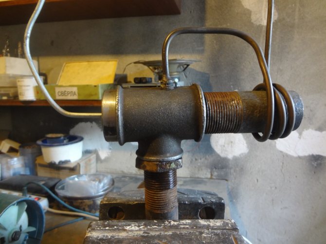 - Le corps du futur brûleur est un té en acier avec un filetage interne. Diamètre intérieur - 50 mm.