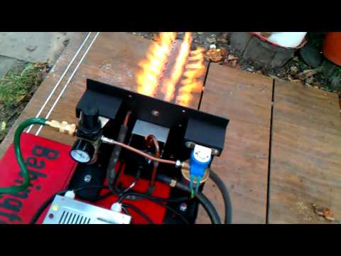 | Je teste une boule modernisée d'un brûleur Babington à 4 trous, un débit d'air de 125-137 cm³/min à 3 atm. |
