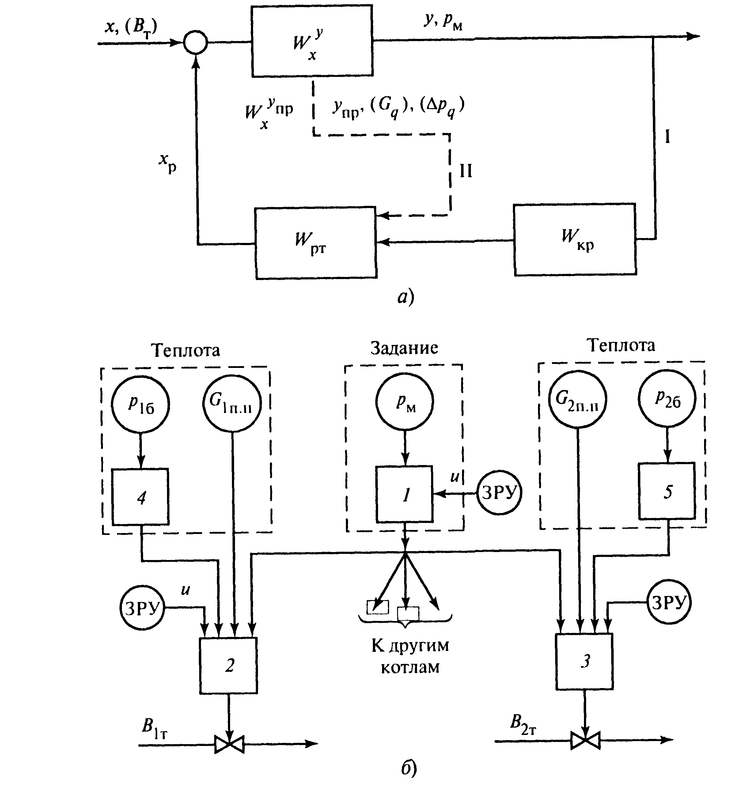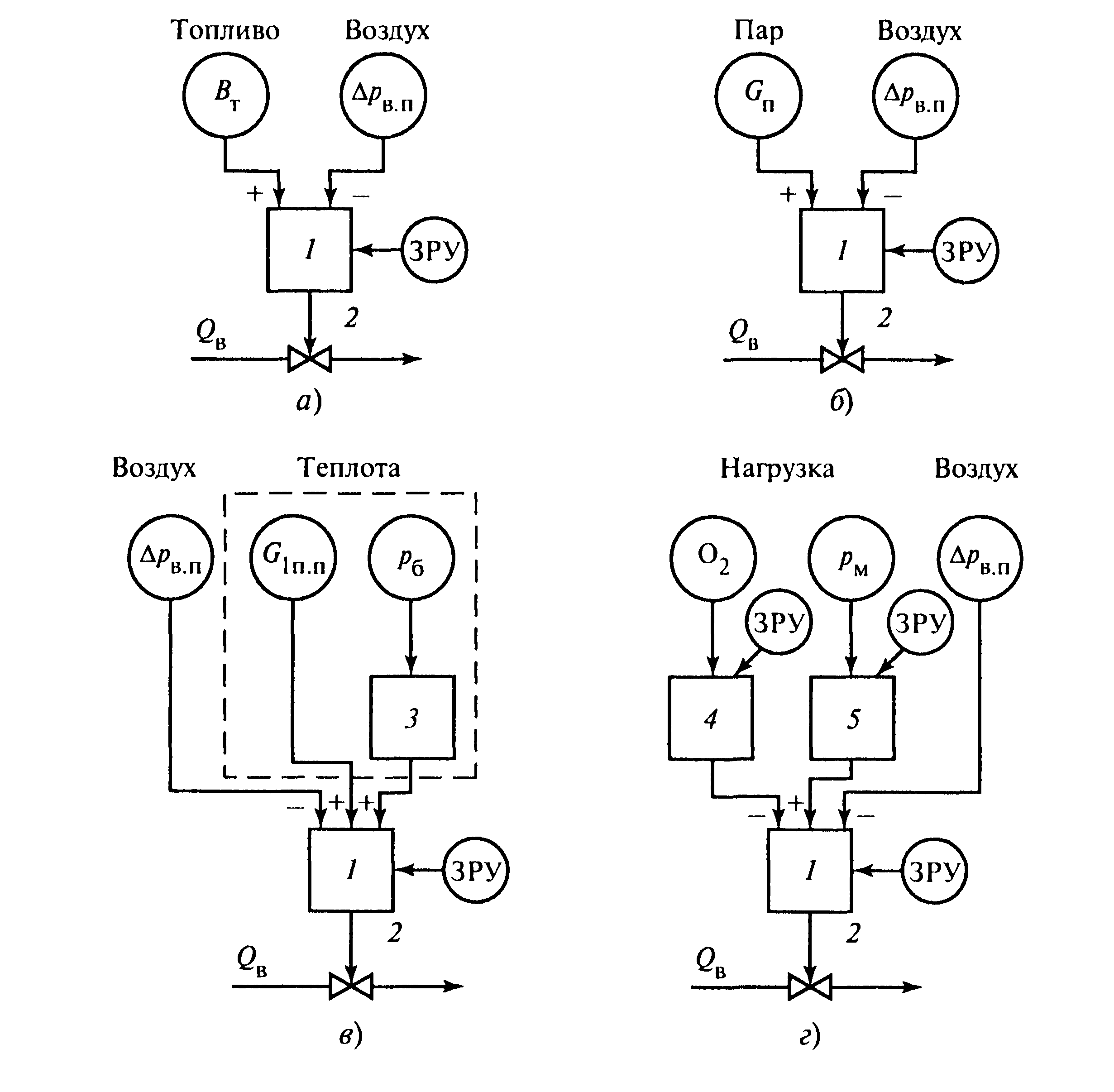 Tout schéma d'automatisation de chaufferie comprend des sous-systèmes de contrôle, de régulation et de protection. La régulation s'effectue en maintenant le mode de combustion optimal en réglant le vide dans le four, le débit d'air primaire et les paramètres du caloporteur (température, pression, débit).Le sous-système de commande délivre des données réelles sur le fonctionnement de l'équipement à l'interface homme-machine. Les dispositifs de protection garantissent la prévention des situations d'urgence en cas de violation des conditions normales de fonctionnement, la fourniture d'un signal lumineux, sonore ou l'arrêt des chaudières avec fixation de la cause (sur un afficheur graphique, un schéma mnémonique, un tableau) .