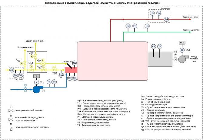 L'automatisation de la chaudière doit répondre aux exigences suivantes: 1) la présence d'un nombre suffisant d'unités de commande pour l'étanchéité des vannes gaz BKG; 2) l'automatisation complète de l'allumage du groupe d'allumage des brûleurs de chaudière; 3) l'installation de systèmes d'automatisation plus avancés devrait être liée aux variateurs de fréquence existants qui contrôlent les extracteurs de fumée et les ventilateurs de soufflage; 4) facilité de gestion [3].
