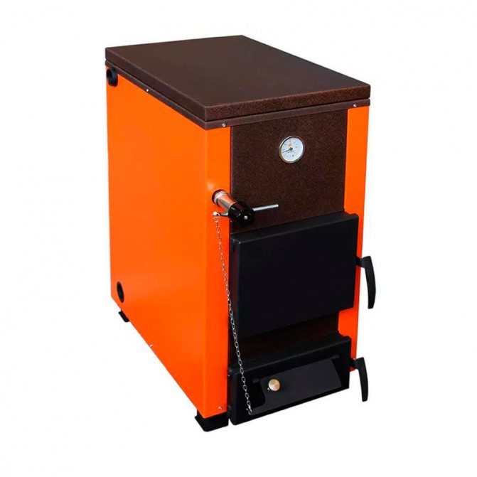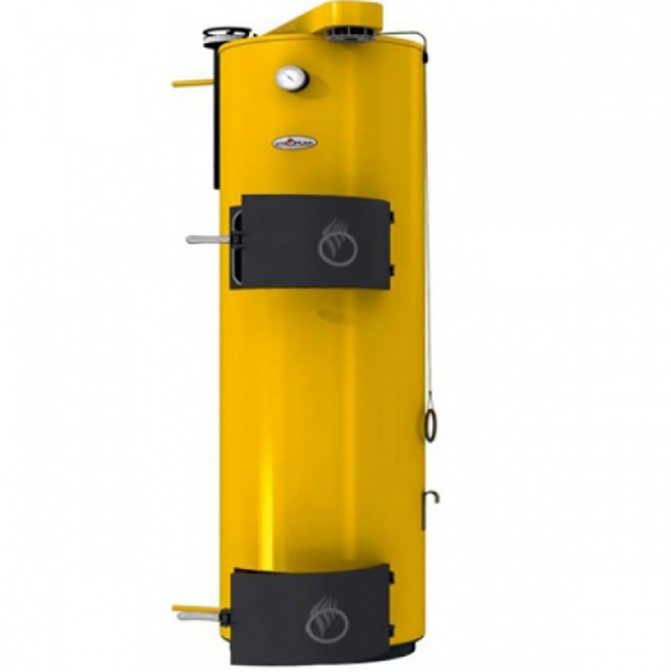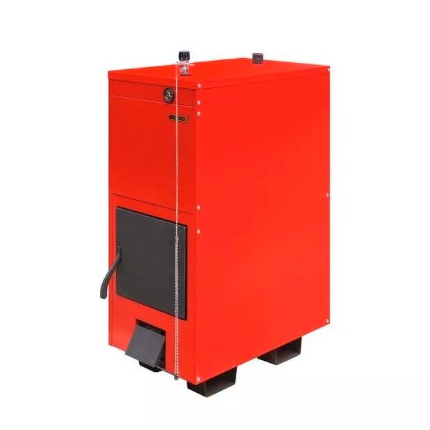 La puissance thermique est de 15 kW, ce qui est suffisant pour chauffer les foyers d'une superficie allant jusqu'à 150 m2. m L'efficacité de l'appareil n'est pas très élevée, elle est de 75%. Le bois de chauffage ordinaire ou le charbon est utilisé comme combustible; il est également permis d'utiliser le bois européen. La température du liquide de refroidissement dans le système varie de +60 à +85 degrés, la pression maximale est de 2 bar. L'échangeur de chaleur est en acier et complété par un élément chauffant d'une puissance de 4 kW. L'unité pèse 115 kg. Prix estimé - entre 17 et 19 mille roubles.