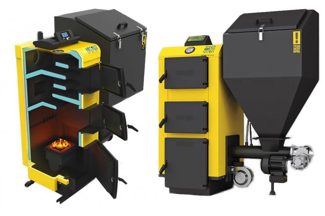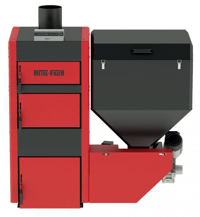 Il existe également des installations universelles qui fonctionnent avec tout type de combustible solide. Ceux. le charbon et le bois peuvent être utilisés pour chauffer les maisons. Cette possibilité est due à la présence d'un réservoir supplémentaire pour le stockage et le chargement des grumes.