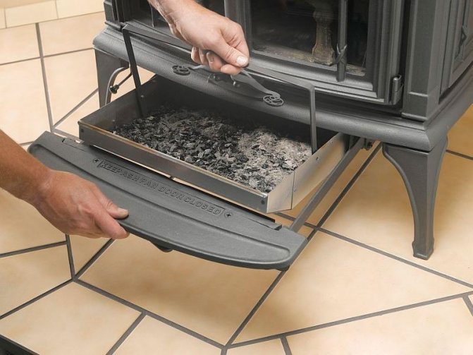 Le bac à cendres est une pièce très importante. C'est ici que les particules de carburant non brûlées, les petits charbons et les cendres sont collectés. Une fois tous les quelques jours, le bac à cendres doit être nettoyé, car il s'encrasse rapidement. Les appareils avec tiroirs à cendres en bénéficient ici - ils sont plus pratiques à utiliser. À propos, les cendres ne doivent pas être mises au rebut, car il s'agit d'un engrais organique sûr. Si vous avez une parcelle avec un potager, vous pouvez utiliser les cendres pour nourrir les cultures.