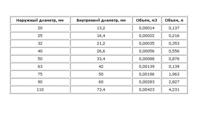 Les calculs sont simples. Ainsi, par exemple, 4,4 litres d'eau rentreront dans un tuyau de 5 mètres avec un diamètre intérieur de 50 mm: 5x0,876 = 4,4