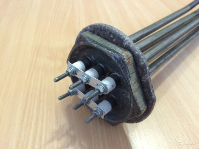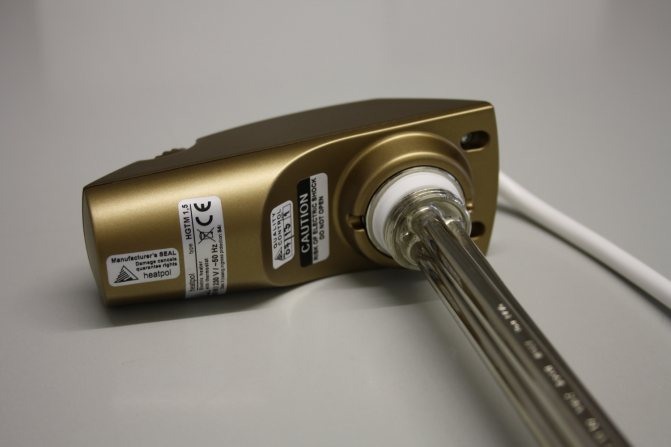 Il convient de considérer l'appareil sur l'exemple d'un modèle tubulaire. Le radiateur électrique est un tube en céramique ou en métal rempli d'un conducteur thermique avec une spirale située à l'intérieur.A l'endroit où le tube est fixé à la bride, il y a des traversées isolantes qui empêchent la spirale conductrice d'entrer en contact avec le corps de l'élément chauffant.