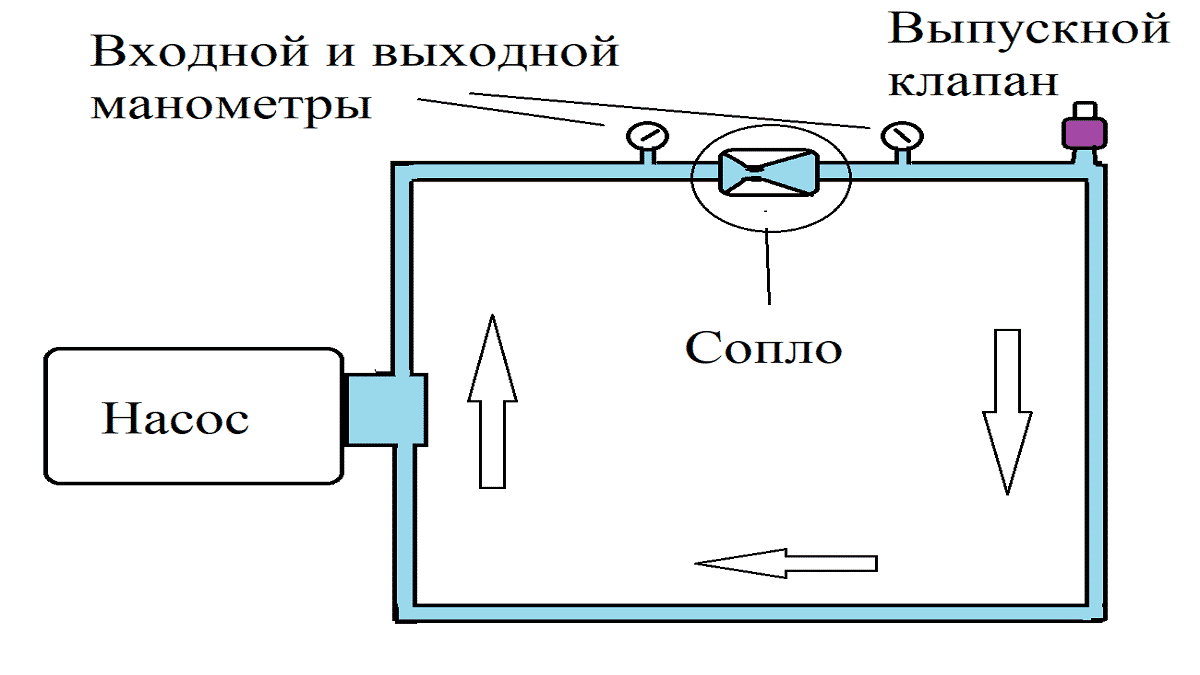 - 2 manomètres et manchons pour leur installation - situés de part et d'autre de la buse pour mesurer la pression à l'entrée et à la sortie de l'élément de cavitation.