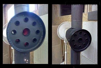 Noter! À l'aide d'un échangeur de chaleur à air, les pièces voisines peuvent être chauffées à partir d'un seul poêle si un tuyau d'air y est amené. À l'aide d'un échangeur de chaleur à air, vous pouvez améliorer un simple poêle ventral ou un poêle ordinaire si vous l'installez sur une cheminée.