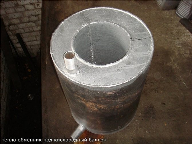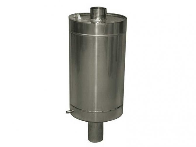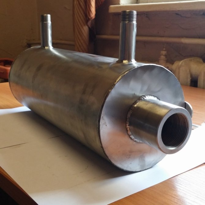 L'échangeur de chaleur le plus simple est un réservoir ou une bobine en métal (tube en spirale), qui contient le caloporteur - l'eau chaude. La source de chaleur est le tuyau de cheminée chaud, qui est en contact direct avec la source de chaleur.