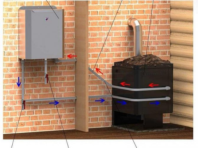 Un transfert de chaleur élevé des poêles de sauna, une intensité accrue de la combustion de carburant en eux sont activement utilisés pour leur placement dispositifs de chauffage de l'eau pour le lavage.