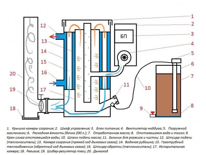 La chaudière fonctionne avec de l'huile usée déjà primaire. Un appareil correctement configuré le brûle complètement.