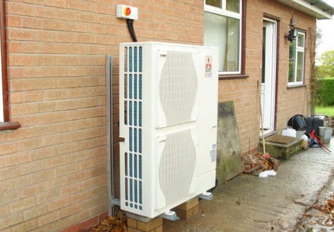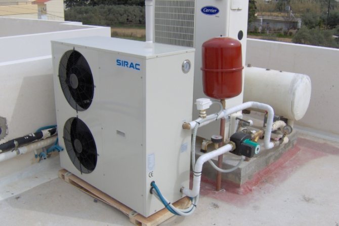 Unités de classe air-eau obtenir de la chaleur directement de l'environnement. De tels appareils n'ont pas besoin d'un grand collecteur externe pour collecter la chaleur, et l'air ordinaire de la rue est utilisé pour chauffer le fréon. Après chauffage, le fréon dégage de la chaleur dans l'eau, après quoi l'eau chaude pénètre dans le système de chauffage par les tuyaux. Les appareils de ce type sont assez bon marché.car la pompe n'a pas besoin d'un collecteur coûteux pour fonctionner.