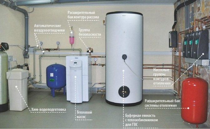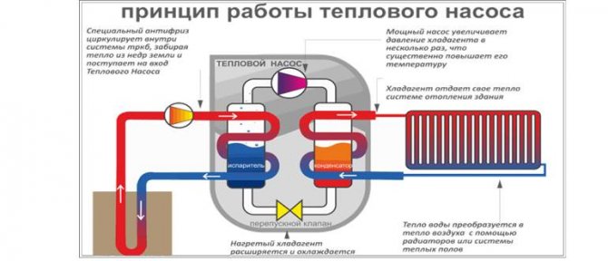 Installations d'eaux souterraines extraire la chaleur directement du sol à l'aide de turbines ou de collecteurs spéciaux... Dans ce cas, la terre est utilisée comme source, qui chauffe le fréon. Il chauffe l'eau dans le réservoir du condenseur. Dans ce cas, le fréon est refroidi et retourne à l'entrée de la pompe, et l'eau chauffée est utilisée comme caloporteur dans le système de chauffage principal.