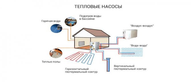 Par exemple, dans le cas d'un dispositif d'eau souterraine la chaleur est extraite du sol, puis convertie en eau chaude, qui est utilisé comme élément chauffant dans le système de chauffage. Ci-dessous, nous examinerons plus en détail les types de pompes à chaleur pour le chauffage.